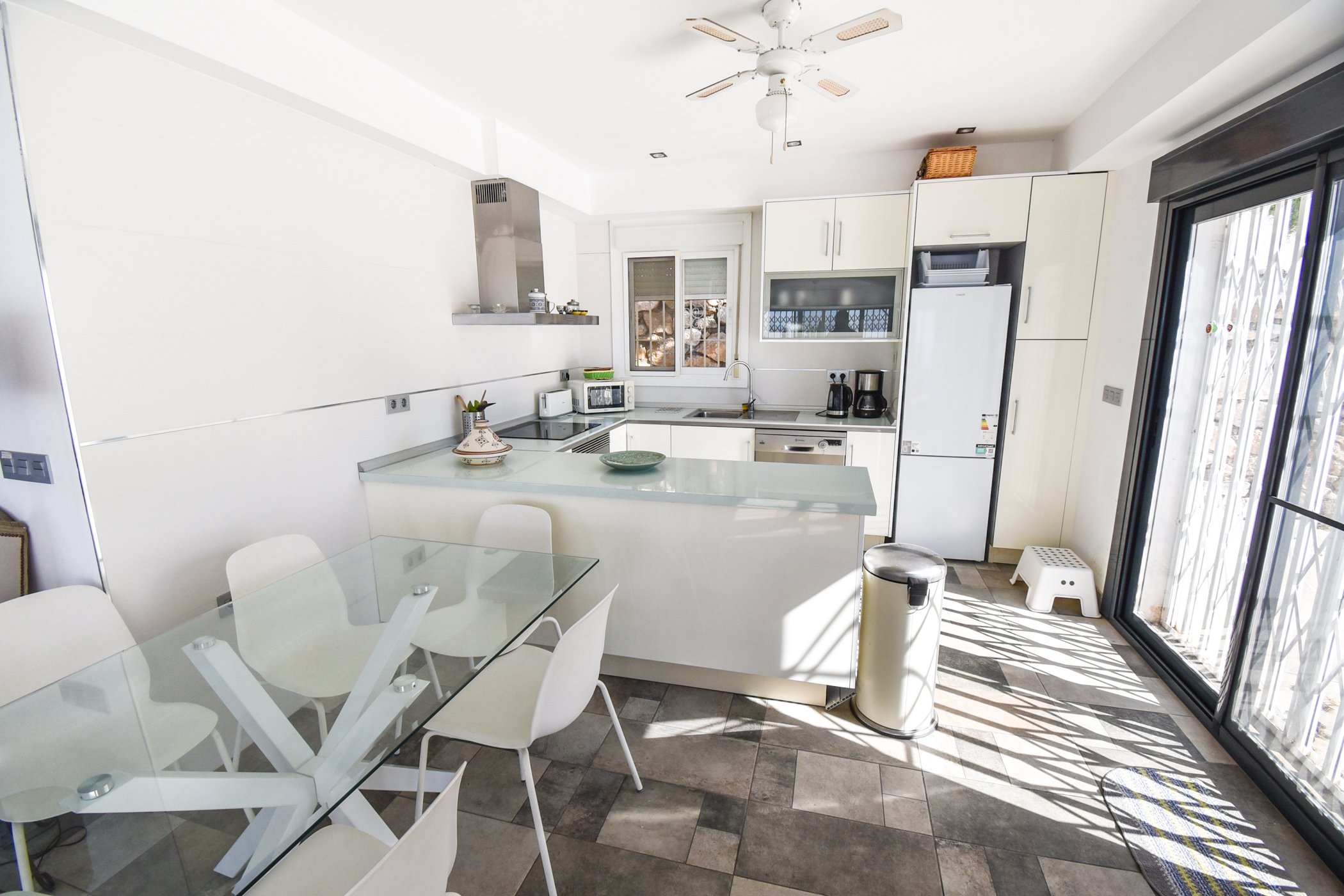 - Contemporary open-plan kitchen fully equipped with premium appliances (dishwasher, oven, microwave, fridge, coffee machine, etc.). Ideal for relaxed breakfasts or dinners with sea views.
