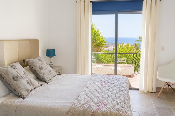 - Schlafzimmer 2: Doppelbett, Ensuite Badezimmer, Klimaanlage, Vorhänge und Rollläden, Meerblick, Zugang zur Terrasse