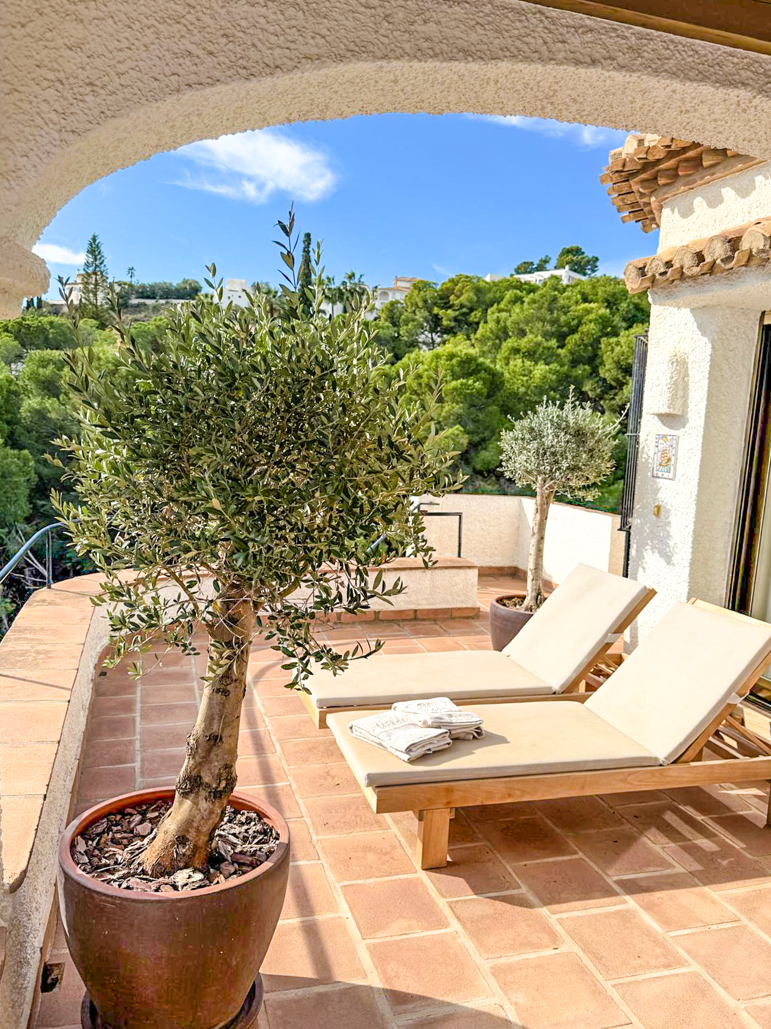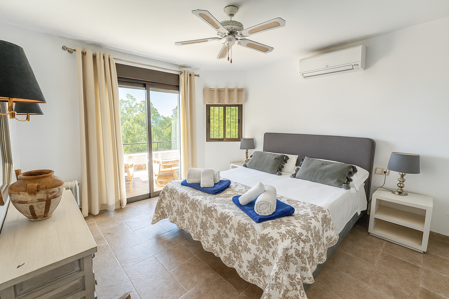 - Schlafzimmer 3: Doppelbett, Ensuite Badezimmer, Schrank, Klimaanlage, direkter Zugang zur Poolterrasse